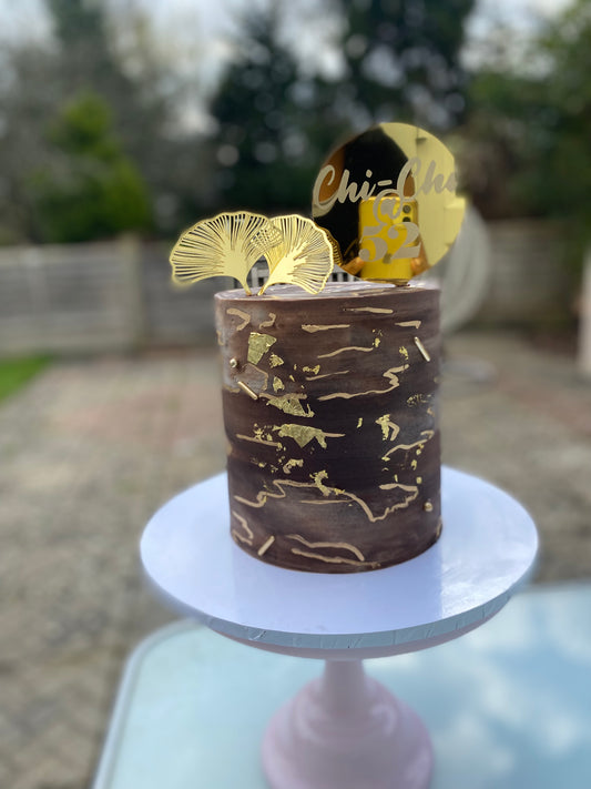 Chocolate brown and gold marble effect buttercream cake