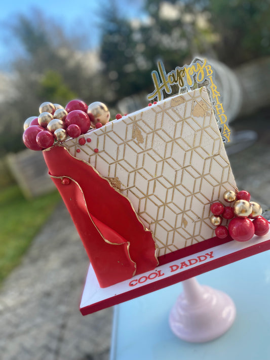 Square geometric stencil cake
